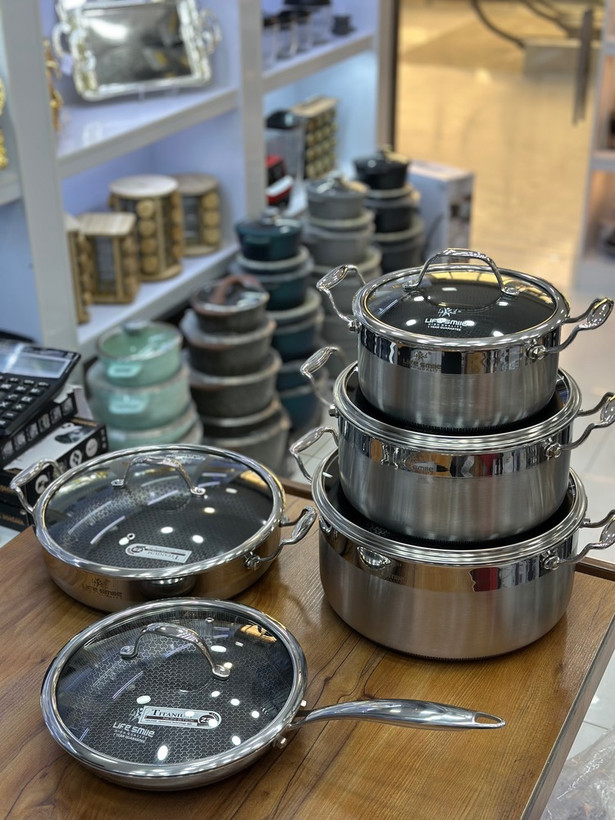 برند : لایف اسمایل جنس : استیل کف لیزری مدل : P-18 داخل قابلمه : لیزری و تفلن کارشده کاملا نچسپ کف : 5لایه و لیزری سایز قابلمه : ،28،24،20 شعله پخش کن : شعله پخش کن حرفه ای سایز ماهی تابه : 24،28 درب : پریکس تعداد پارچه : 10پارچه : بهترین برند بازار